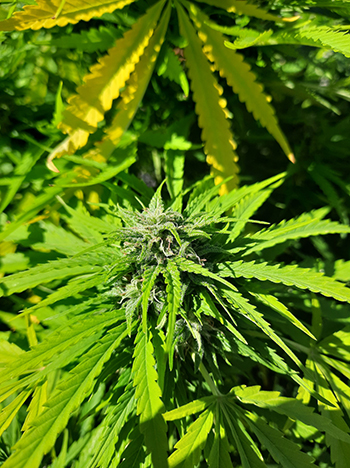 Het weer was goed en de bloemen genoten met volle teugen. Wel heb ik elke dag de weer-app goed in de gaten gehouden, want het kan zomaar omslaan. Net zoals vorig jaar was de Gold Rush Outdoor de eerste van de Spliff Seeds die klaar was om te oogsten. Toen ze de eerste schimmeltjes begon te vertonen, heb ik haar geoogst. Dat was op 16 oktober. Als vanouds heb ik weer dikke toppen geoogst met de Gold Rush outdoor. Het is een goede, stabiele buitensoort. Maar ook heeft deze een lekker aroma. De geuren citrus en limoen zijn duidelijk aan de toppen te ruiken. En bij een kleine pre-smoke was de dieselsmaak al duidelijk aanwezig. Nog even curen dus.