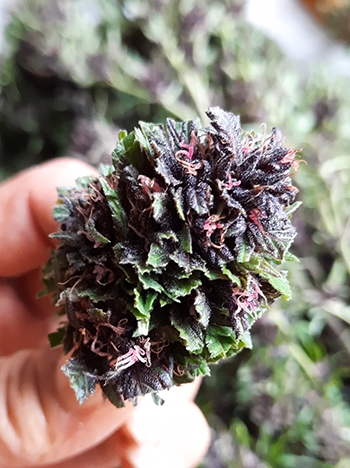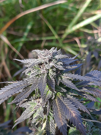 Ook de Purple Berry Kush van Spliff Seeds deed het goed in de tuin. Een mooie plant om te zien. Naarmate de bloei vorderde, kwamen de mooie paarse tinten naar voren. Ook deze had een goede opbrengst, maar zal nog even moeten drogen en curen.