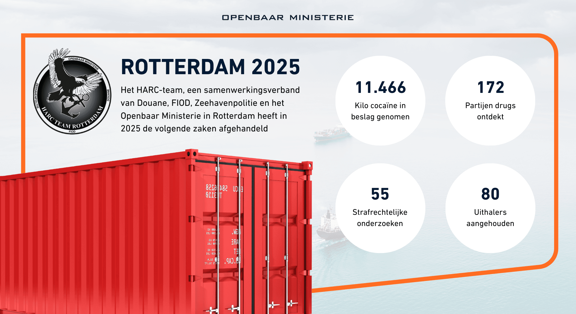 Het HARC-team, een samenwerking van Douane, FIOD, Zeehavenpolitie en Openbaar Ministerie, ontdekte in totaal 172 partijen van verschillende soorten drugs in 2025. Een jaar eerder kwam het nog tot 189 busts in de grootste haven van Europa. Of eigenlijk zijn het twee havens, want die van Vlissingen doet ook mee in de cijfers en wel met 24 van de 172 vangsten.