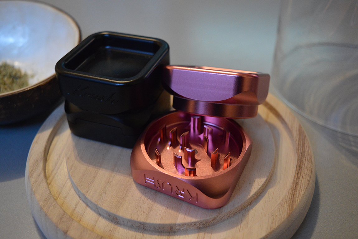 Het helpt hierbij natuurlijk ook dat de grinder ontzettend sterk gemaakt is, en bovendien wat groter dan de meeste andere grinders. Krush grinders zijn namelijk van geanodiseerd aluminium, wat betekent dat ze geen verflaag hebben die los kan laten. Bovendien bestaan ze ook niet uit een dun laagje aluminium maar hebben ze mede door hun vierkante buitenvorm, een dikke stevige wand die tegen een stootje kan. Het is hierdoor misschien niet de meest compacte grinder om overal mee naar toe te nemen.