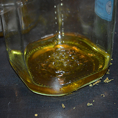 Als de wiet is afgekoeld, giet je er een laagje alcohol overheen en roer je het een paar minuten goed door elkaar zodat de werkzame stoffen in de alcohol worden opgenomen. Hierna filter je de wiet eruit met een koffiefilter. Knijp de wiet nog even goed uit zodat je zoveel mogelijk alcohol opvangt.