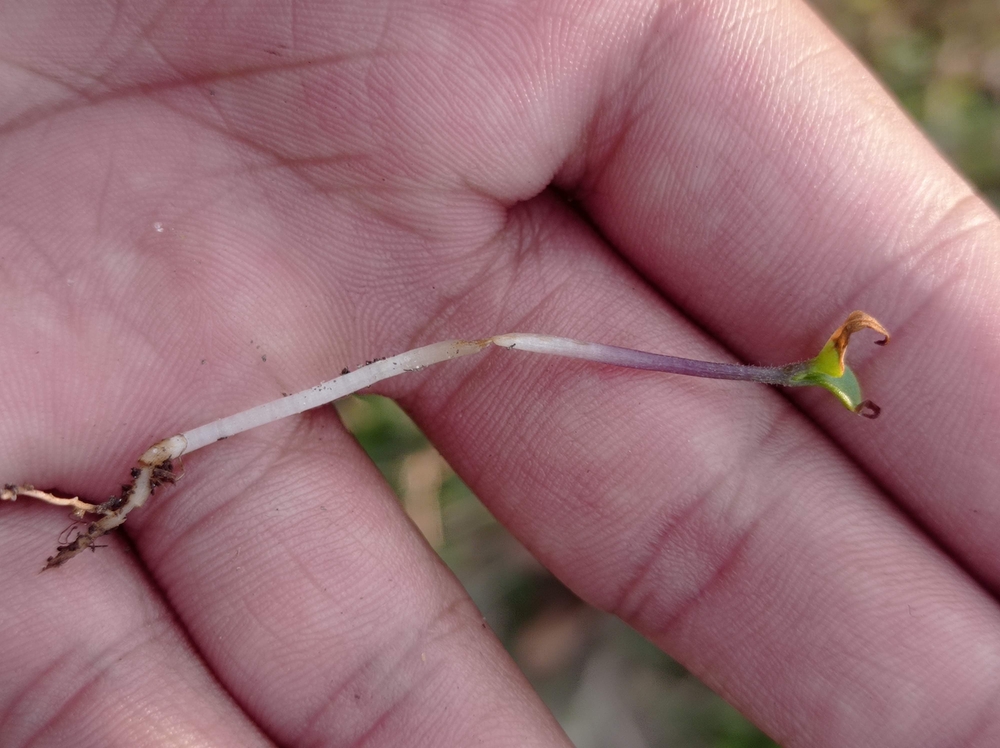 De tweede oorzaak waardoor de stam of steel van een zaailing dichtgeknepen kan worden is wurging. Dit gebeurt wanneer het vliesje dat in het zaadje zit, om het steeltje blijft zitten na het ontkiemen. Als het vliesje dan opdroogt wordt het hard en kan het het steeltje als het ware wurgen. Ik denk niet dat dit het probleem is in dit geval, want doorgaans zit zo’n vliesje veel hoger op het steeltje, vlak bij de lobblaadjes.