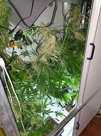 Bloeiweek #7 is achter de rug en de dagen voor de Liberty Haze zijn bijna geteld. Zo mooi groen als de dames waren zijn ze nu niet meer. Langzaam worden de bladeren geler en slapper en blijven de hoofdtoppen niet langer op eigen kracht overeind. Een kijkje in de kast: