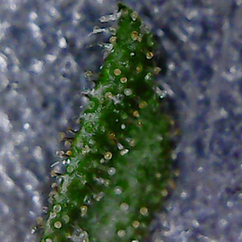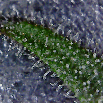 Naast de grote toppen, groeien er ook een hoop kleintjes die ik natuurlijk niet één voor één op de foto ga zetten. De meesten zien er als volgt uit, en zitten lekker vol met trichomen.