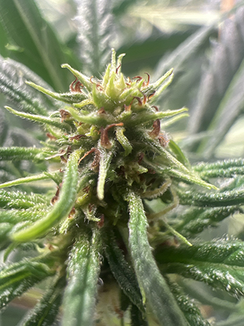 Hoi Mike, bedankt voor je vraag. Die toppen zien er inderdaad een beetje vreemd uit zo. Voor de eerste bloeiweek vind ik ze al behoorlijk dik, maar dat kan ook wel kloppen want je hebt er een dikke 1000 Watt LED boven hangen. De bruine haren zijn alleen geen goed teken, en ik denk ook dat de ontwikkeling van deze toppen hier min of meer stopt.