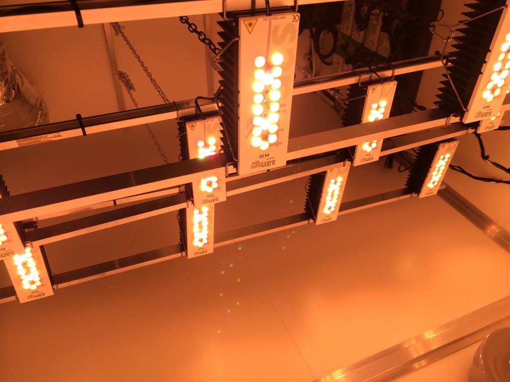 Bio Bertje vergeleek losse LED modules (SANlight) met grote LED’s (420 Sunfactor) waarbij de losse modules wat meer opbrengst bleken op te leveren