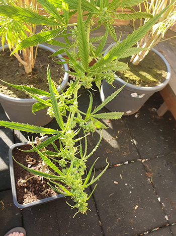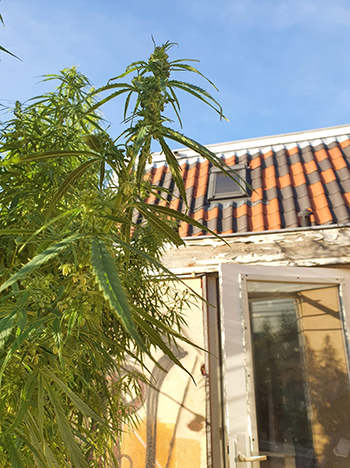 De drie grote wietplanten op het dakterras van Thomas zien er indrukwekkend uit. De kleinste van het trio is ruim twee meter hoog en van toprot is nog geen sprake. Van toppen trouwens ook niet maar twee van de drie planten hebben wel een soort knopjes, zoals Thomas het omschrijft. Zouden het misschien hermafrodieten zijn? En als dat zo is, hoe en wat kan er dan nog afbloeien?