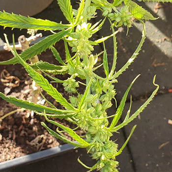 Resumerend heb je dus twee mannelijke planten en één dame. De twee mannelijke planten met de knopjes kunnen de groenbak in helaas, maar de dame zou je theoretisch binnen kunnen afbloeien. Je moet je echter wel afvragen of dat de moeite waard is. De plant is enorm hoog, en heeft daardoor een heel ongunstige vorm om binnen onder een kweeklamp te zetten. Je hebt een hoog plafond nodig, en een lamp die twee meter in het bladerdek kan doordringen.