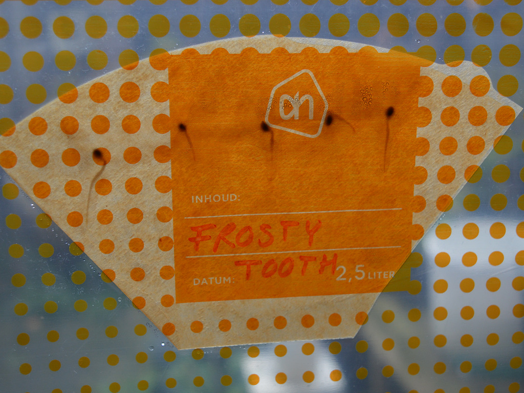 Vorige week woensdag had ik mijn kweekronde met Frosty Tooth natuurlijk aangekondigd, en de zaadjes ook meteen in een nat koffiefilter gedaan om te laten ontkiemen. Omdat ik drie pakjes over had, heb ik die verloot onder lezers die deze mooie indica wietsoort met me mee willen kweken.