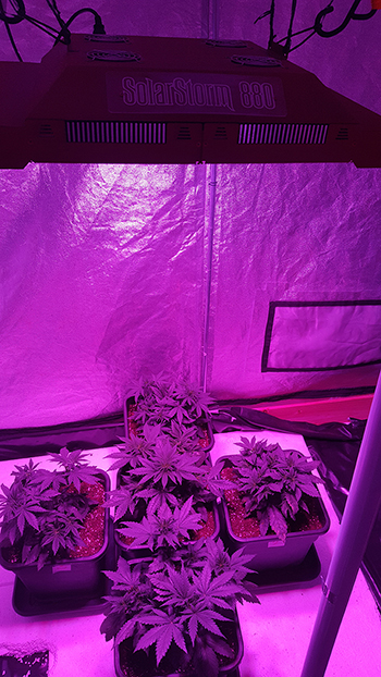 De 5 Lemon Haze planten van Dysonkid hebben een roerige eerste bloeiweek achter de rug. Hun onderkomen werd tegelijk met het ingaan van het 12-uurs lichtregime verkleind, de led uit Californië ging omhoog en ze kregen spijtig genoeg ongewenste bezoekers…