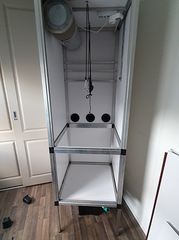 De Dokter Groen Special is een exacte replica van de kweekkast van Dokter Groen. Deze komt inclusief een verhogingsset, extra deuren voor gemakkelijke verzorging van je planten, het hydrosysteem, balken om het systeem op te plaatsen en voorgeboorde gaten om de slangen doorheen te voeren. Je kunt je bestaande CNNBS kweekkast echter ook vrij gemakkelijk zelf ombouwen. Wat je dan nodig hebt is een dozenboor, een (accuschroef)boormachine en een handzaag of ijzerzaag.
