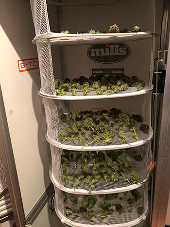 Na de grote bladeren van de plant te hebben getrokken, hang je de plant ondersteboven te drogen en wacht je tot ze echt droog zijn. Daarna doe je de toppen in de trimbag, schud je die een paar minuten schudden en klaar is Kees! Handig dus! Je verliest op deze manier wel wat trichomen ten opzichte van met de hand knippen, maar die kun je weer opvangen en gebruiken om bijvoorbeeld wietboter of medicinale wietolie van te maken.