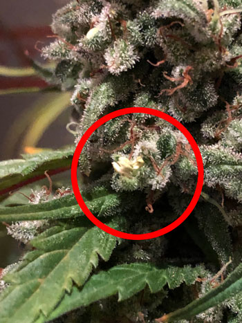 Heb je een échte hermafrodiete wietplant, dan heb je wél een serieus probleem en kan je eindigen met toppen vol zaad. Hermafrodieten produceren tegelijk met toppen namelijk ook volledig ontwikkelde mannelijke bloemen en stuifmeel.