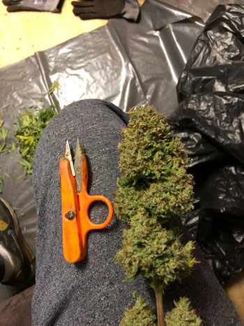 Na drie uur knippen had ik het weer helemaal gehad. Knippen is wat mij betreft het meest vervelende klusje van het hele kweken. Toch, als je daarna je droognet met smakelijke dikke toppen mag vullen, dan is de ellende van het knippen alweer snel vergeten. Het weegmoment bewaar ik voor een volgend verslag want de boel is nog niet droog helaas. Tot snel en hou ze groen!
