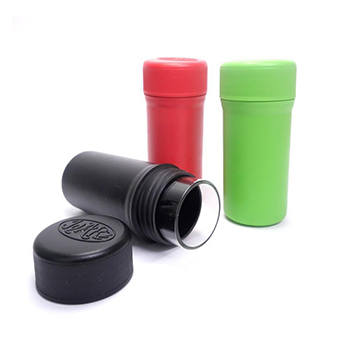 Jyarz zijn wietpotjes op zakformaat. De potjes zijn gemaakt van glas, (sowieso het beste materiaal om wiet in te bewaren) maar hebben een vrolijk gekleurde buitenbehuizing. Deze buitenbehuizing is schokbestendig en zorgt ervoor dat jouw Jyarz potje niet breekt als je hem onverhoopt laat vallen. Deze buitenbehuizing blokkeert bovendien licht en is gemaakt van gerecyclede melkkannen.