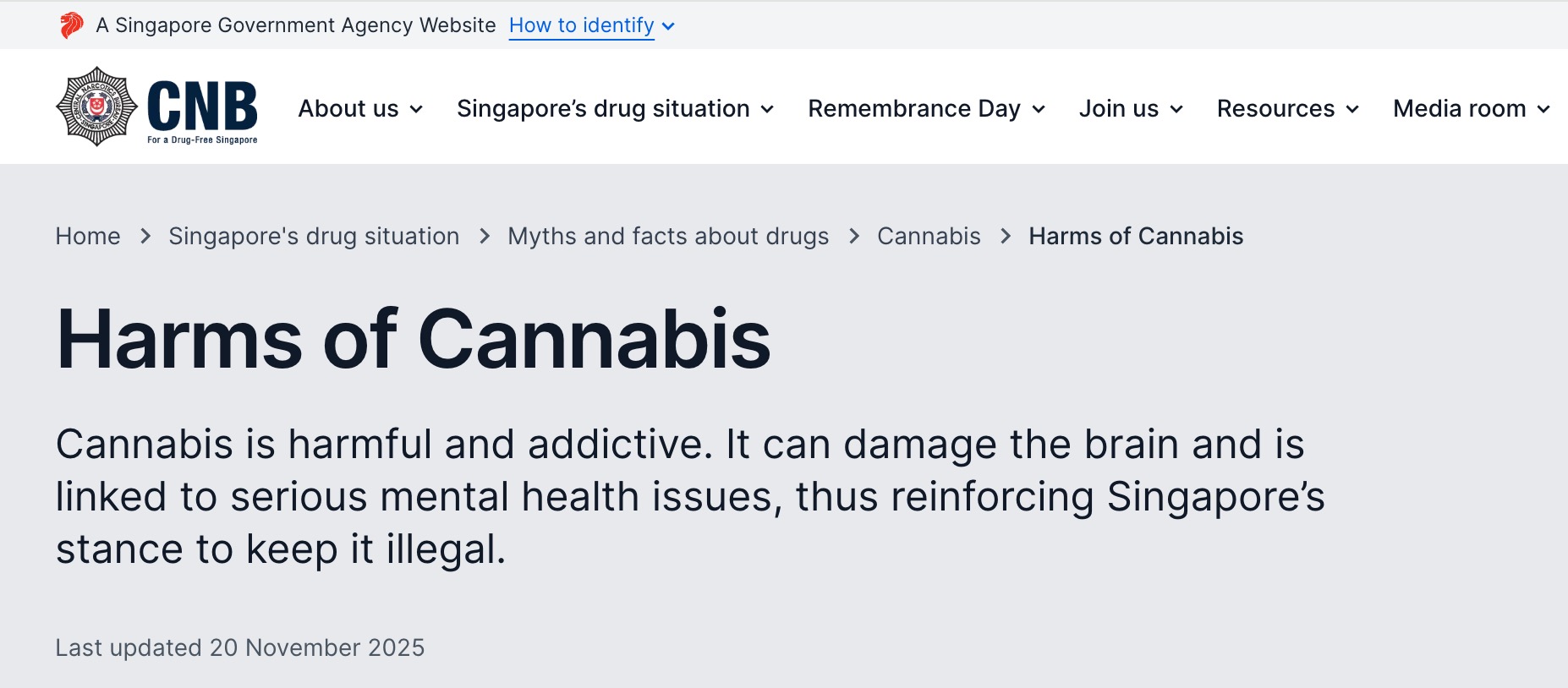 Kijk, lees en huiver met cannabis informatie van overheid Singapore!