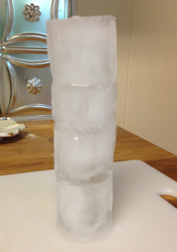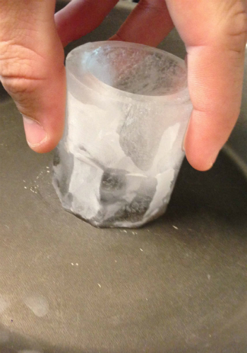 Voor de hals van je ijsbong ga je op zoek naar een cilindervormige mal. De mal op de foto hierboven is eigenlijk een mal voor ijs-shotglaasjes maar als je een beetje creatief bent kun je natuurlijk gemakkelijk zelf iets fabriceren. Denk bijvoorbeeld aan plastic bekertjes met in het midden een stuk PVC-buis of een stuk bamboe of iets dergelijks. Maak je mallen, vul ze weer met water en zet ze in de vriezer.