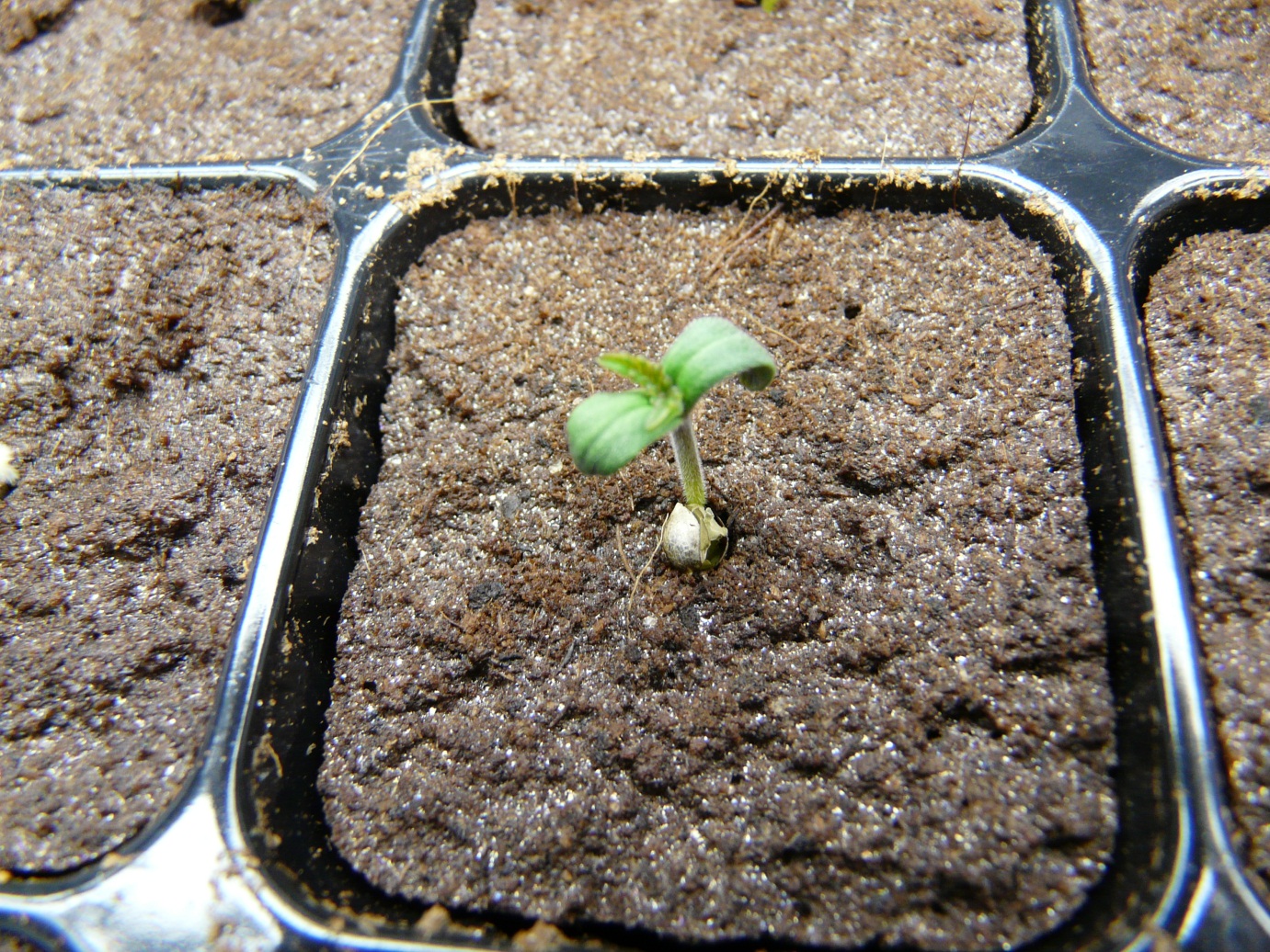 Dag 5, 48 uur nadat de meeste zaden uitkwamen, zijn er nog maar twee zaden niet opgekomen. De kleintjes zien er prima gezond uit ! Ik sproei 4x per dag.