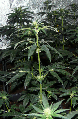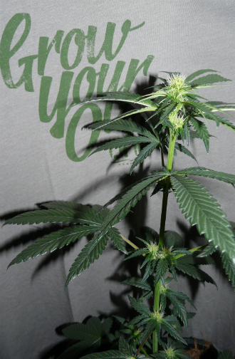 De planten zijn de afgelopen week ook weer een flink stuk gegroeid. Het valt op dat deze soort niet veel vertakkingen aanmaakt en de groei zich vooral concentreert op de hoofdtoppen. Als raketten waarvoor het aftellen begonnen is, prikken ze omhoog in het licht van mijn kweeklamp. Ik verwacht daarom hele dikke hoofdcola’s van toppen aan deze dames. Dat kan bijna niet anders, aangezien de energie van deze planten eigenlijk nergens anders heen kan.