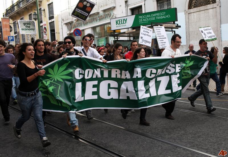 Drugs niet legaal in Portugal, maar gedecriminaliseerd. En dus wordt er ook daar nog altijd gedemonstreerd voor legalisering van cannabis.