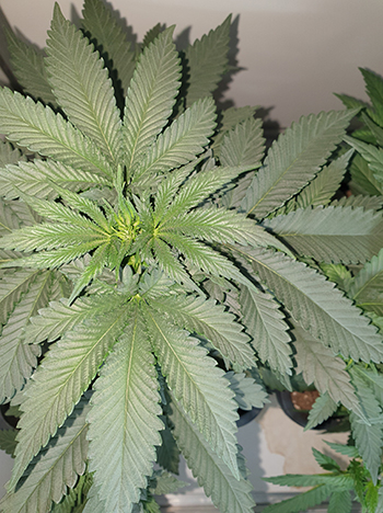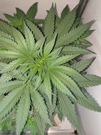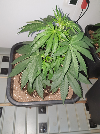 In de CNNBS G-kit (met verhogingsset) vinden we de twee Sneeze dames. Na een kleine achterstand door wat kiemproblemen, lijkt de kleine Sneeze de andere aardige bij te houden. Ze zijn echt mooi donkergroen en gemiddeld 27 centimeter hoog, nog net te kort voor het plaatsen van het scrogrek. De G-Bars LED hangt zo’n 20 centimeter boven de twee planten.