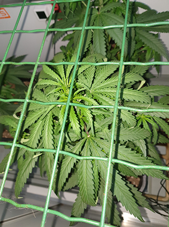 De Mohammed wietplanten maken het erg goed, en groeien als kool. De Mohammeds in de G-Kit XL kweekkast lijken de extra warmte deze groeifase erg prettig te vinden. De planten zijn al zo groot geworden dat ik het hekwerk (scrogrek) alweer in de kast heb moeten plaatsen.