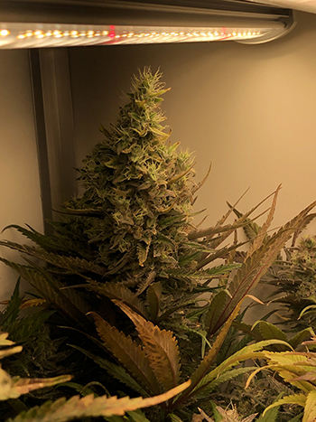 Drie van mijn wietplanten zijn rijp maar er is één dame die er zo haar eigen ideeën op na houdt, en best nog een week zou mogen doorbloeien. De wietplant in kwestie is een ander fenotype.