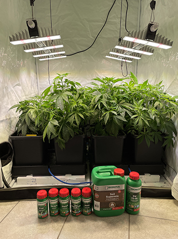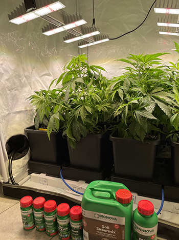 De Bio Nova voeding werkt uitstekend, en met hulp van het ‘flexitank‘ reservoir van het Autopot-systeem, hoef ik maar één keer in de week nieuw water met voeding aan te maken. De 100 liter is voldoende om de planten een hele week te verzorgen. Ik volg nog steeds het ‘soil-cultivation‘ schema van de website van Bio Nova, maar gebruik maar de helft van de aangegeven hoeveelheid, omdat mijn kraanwater al een EC-waarde van 1,0 heeft.