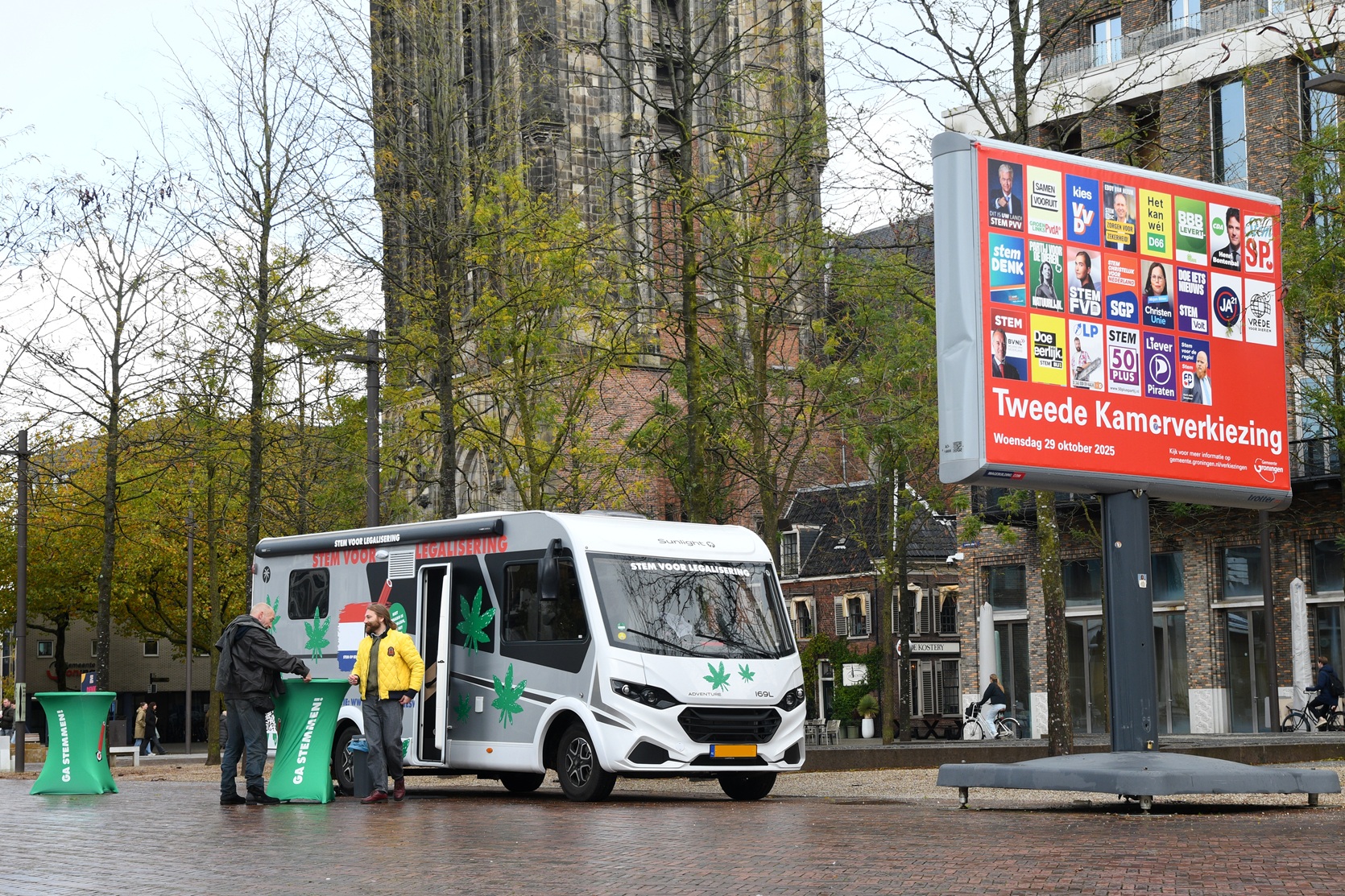 De CannaStemBus on tour tijdens de Tweede Kamerverkiezingen afgelopen najaar, hier in Groningen…