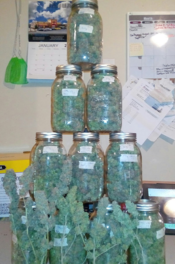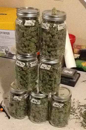 De opgepotte oogst, links de 348 gram Bubble Gum en rechts de 223 gram Train Wreck