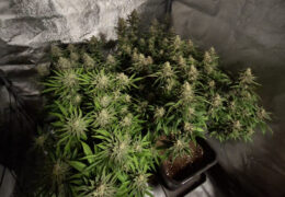 In de grotere tent met vier planten erin, heb ik de klok nu ook omgezet. Daarmee is het even afwachten tot we de eerste bloeiverschijnselen zien, zodat we uit kunnen rekenen wanneer de dames ongeveer klaar zijn. Dat is wel zo handig als ik de volgende planten op tijd klaar wil hebben voor de tent. Zo kan ik dan gelijk door met de volgende ronde. Dat is het plan, en op de foto’s zie je hoe de planten er op dit moment bij staan.