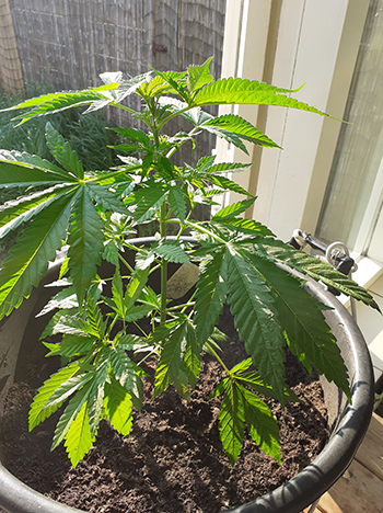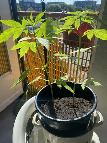 Doodgaan doen wietplanten niet als ze samen in een pot staan, maar ze gaan wel met elkaar concurreren. Alledrie willen ze namelijk graag de grootste zijn, zodat ze het meeste licht kunnen opnemen. Dat is ook te zien op de foto, want de stammetjes zijn behoorlijk lang. Wietplanten die gewoon naast elkaar staan in verschillende potten, concurreren ook met elkaar om het licht, maar in dit geval beconcurreren ze elkaar ook nog eens onder de grond. Niet ideaal dus, maar wel heel leuk om te zien. Geef je volgende drie planten allemaal een eigen pot, en je zult ook bijna drie keer zoveel oogsten.