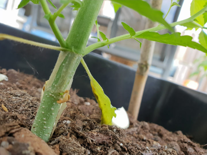 Hallo Kay, tof dat je dit jaar ook met buitenkweken begonnen bent. Ik kan het iedereen aanraden; de zon gaat voor niets op en als het weer een beetje meewerkt kun je een hoop oogsten! Moet je alleen geen last krijgen van ongedierte, dus goed dat je me even een mailtje stuurde. Als ik het echter zo zie dan valt het allemaal wel mee. Ik denk zelfs dat het helemaal geen spint is in dit geval maar een draadje van een gewoon klein tuinspinnetje. Ik zie wel sporen van een ander beestje maar daar kom ik zo op.