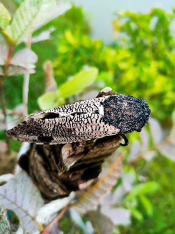 De houtwormkever ondergaat een gedaanteverwisseling en doorloopt daarbij vier stadia: eitje, larve (de bekende houtworm), pop en volwassen kever. De zwarte korreltjes die je in de stam van je hoofdtop gevonden hebt bevinden zich waarschijnlijk in het pop-stadium. Het zouden echter ook de uitwerpselen van de larven kunnen zijn. Heb je met de houtboorder – een vlindersoort – te maken gehad, dan zouden het ook daar de poppen van kunnen zijn.