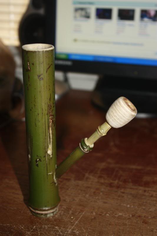 - Als je ook de downstem (het rookkanaal dat in het water steekt) van bamboe wil maken heb je ook een dunner stuk bamboe nodig, je kunt ook een kant en klare downstem en bowl van glas kopen.
