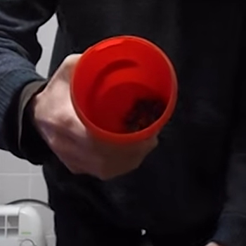 Vermaal de wiet met een grinder en stop het in het potje. Span daar het gaas overheen en daaroverheen de hals van de colafles. Nu is het een kwestie van schudden zodat de pollen (trichomen) van de wiet door het gaas vallen en in de colafleshals terecht komen. Met het kwastje veeg je ze naar beneden zodat ze in de dop verzamelen. Even bij elkaar drukken met je vingers en je hebt een heerlijk stukje polm. De trichomen vallen extra makkelijk door het gaas heen wanneer je de wiet en het potje eerst een nachtje in de vriezer zet. Enjoy!