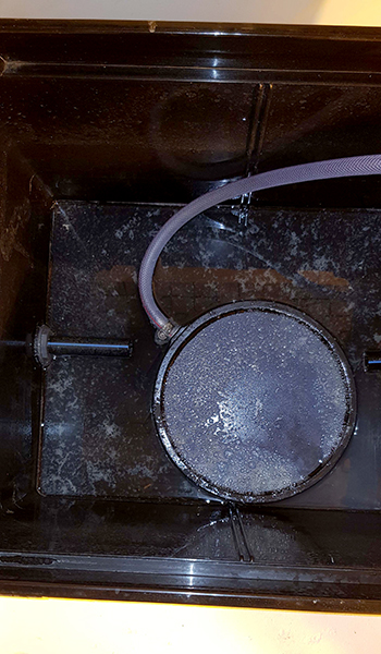 Daarna heb ik het systeem opnieuw gevuld maar deze keer met emmers vanuit de keuken. Deze keer gebruikte ik alleen de hydro A en hydro B voeding, en niet de Pure Zym. Twee weken later had ik nog steeds geen last van de witte aanslag. Wel zit het in de probe (sensor) van mijn pH- en EC-meter maar gelukkig beïnvloed het de metingen niet. Ik gebruik de probe ook alleen tijdens het meten; als ik niet meet staat ie in een glas met water en Halamid. Dat is een sterk ontsmettingsmiddel dat alles hoort te doden.