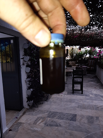 De andere – sterkere – partij leverde ondanks dat het minder was eenzelfde hoeveelheid wietolie op. Meer kristallen die ook sterker zal zijn; ik heb een 1 op 5 verdunning gebruikt. Het resultaat is een lekkerdere olie in totaal 35 gram verdund. De smaak is niet zo sterk als de olijfolie, verder is er een lekkere high die opkomt na +/- 30 minuten. Deze olie is niet zo sterk als die van vorig jaar maar werkt wel heerlijk relaxend, en het hoeft voor mij ook niet puur om een high te gaan. Denk dat door de combinatie met de paardenbloem er een zeer sterke medicinale olie ontstaat, die goed voor het lichaam is.
