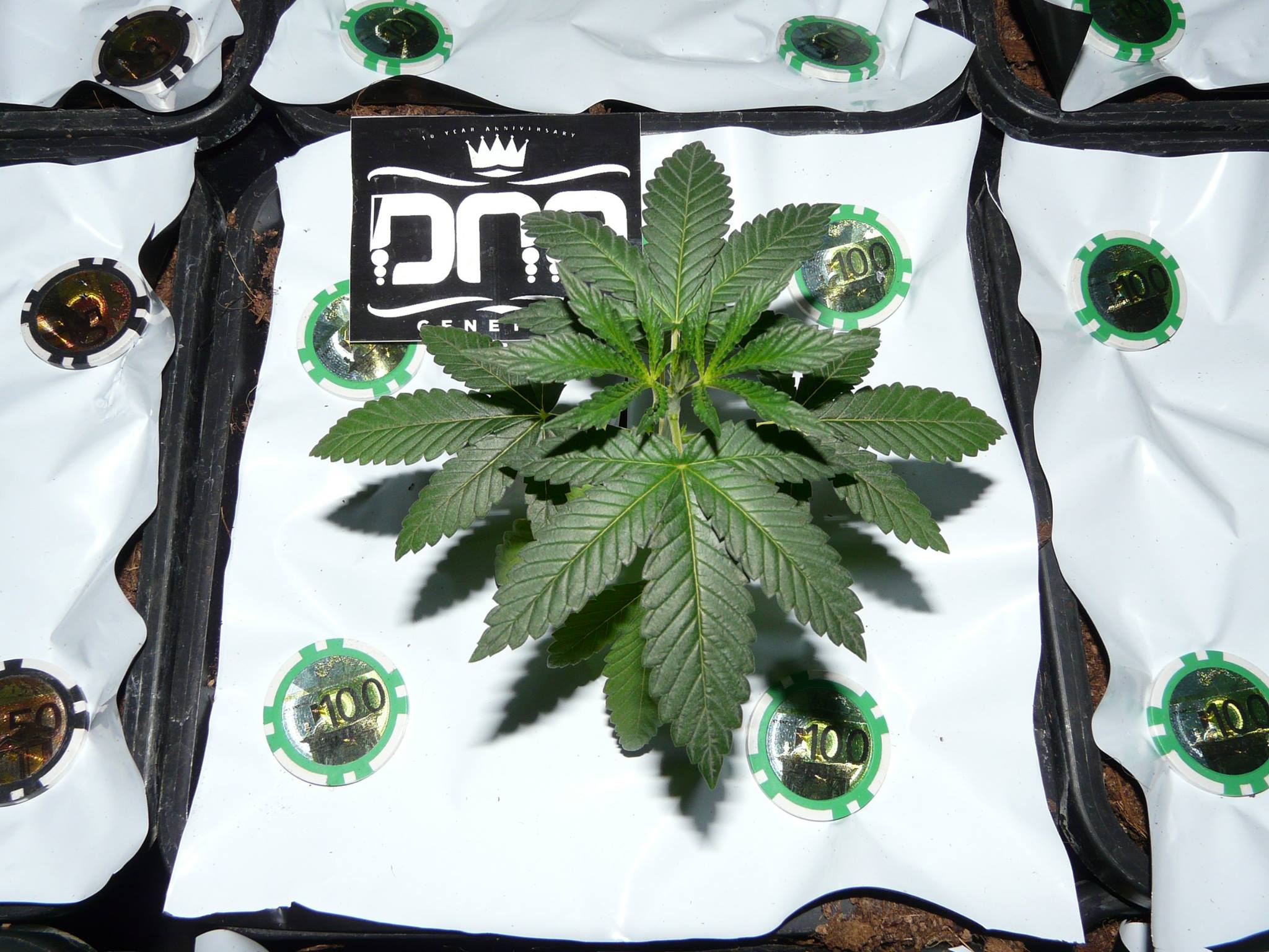 Ik ben weer een nieuwe kweekronde begonnen inderdaad. Met wat volgens mij wel een heel bijzonder soortje is en niet voor niets door DNA Genetics naar de heilige graal wordt vernoemd. Het is een kruising tussen meervoudig cupwinnaar Kosher Kush en de kampioen OG #18. Een fris groene plant met dikke harsachtige toppen die mijn kweekruimte straks vult met een enorme sterke geur! Het zal nog even duren maar ik kan niet wachten tot dit soortje in haar volle glorie staat te bloeien!