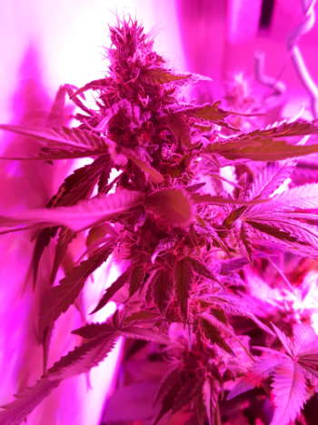 De witte top had al vroeg in de bloeifase enige verbleking en die is gewoon met de top meegegroeid als het ware. Vanaf dat moment ben ik de planten Led Protect gaan geven. Dat is een voeding die planten meer weerstand geeft en ze zo beschermd tegen dit soort verschijnselen. Light bleach (verbleking door te veel licht) is namelijk iets wat vaker bij planten onder LED kweeklampen voorkomt. Hoewel er sindsdien geen nieuwe witte toppen meer zijn bijgekomen, is de verbleking die er al was onomkeerbaar. Ik vind het persoonlijk niet zo’n probleem, omdat het ook maar één topje betreft en het mooi is om naar te kijken bovendien.