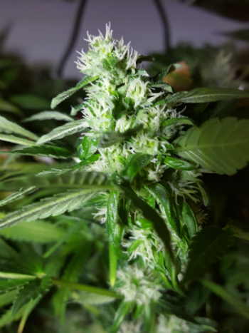 Hallo liefhebbers van het groene genot, hier ben ik weer met mijn wekelijkse reslaas vanuit mijn kleine microkweekkastje. Mijn planten hebben er nu zes weken bloei opzitten, en mogen nog wel wat dikkere toppen krijgen als het aan mij ligt. De planten groeien erg dicht op de lamp, waardoor één van de topjes spierwit geworden is. Het is een mooi gezicht voor de foto, maar helaas heeft zo’n witte top maar nauwelijks THC. Gelukkig kun je het wel gewoon roken, en dat ga ik ook gewoon doen, maar nu nog niet uiteraard.