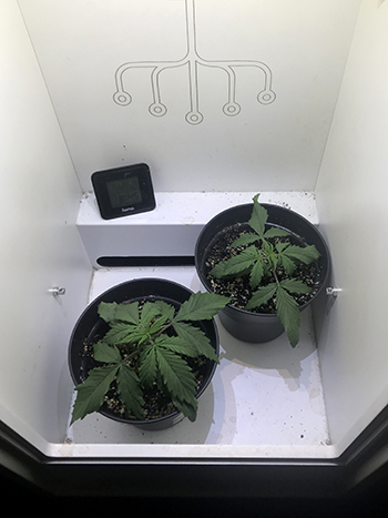 Lars heeft een prachtige MiniGrow Box met daarin twee autoflower wietplanten. De planten zullen een week of drie, vier oud zijn en hebben een mooie diepgroene kleur. Er zijn eigenlijk maar twee problemen waarom Lars onze Lieve Muna mailt: de bladeren hangen naar beneden en zijn misvormd, kijk zelf maar.
