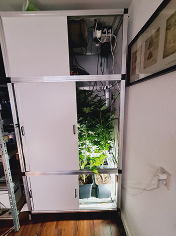 Aan de onderzijde van de G-kit moest deze week ook het één en ander gebeuren. De dames waren aan de onderzijde weer wat aan de rommelige kant geworden, maar na een kleine knipbeurt stonden ze er weer netjes bij. Ik heb ook nog een aanpassing gedaan aan de twee 120 millimeter ventilatoren die ik in het armatuur van de G-Bars 150 Watt heb verwerkt. Deze stonden continu aan en dit leverde een probleem op met water gegeven. De ventilatoren stonden naar beneden toe gericht, en als ik de deur open deed kwam de wietlucht je hierdoor tegemoet. Deze gaan nu op een timer zodat ze even uit staan rond het tijdstip dat ik de dames water en liefde ga geven. Na deze aanpassing is het probleem met de luchtjes opgelost.