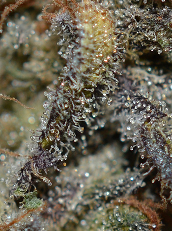 Althans, als je het goed doet. Ik heb vanmorgen zelf ook een poging gewaagd al is die wel mislukt. Ik wil de foto toch even delen, omdat er een hoop trichomen op te zien zijn. Klik op de foto om in te zoomen.
