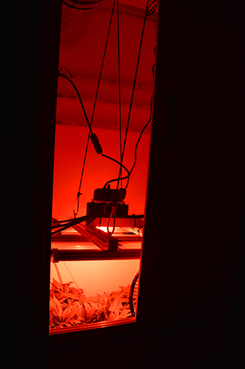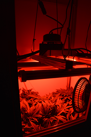 Ze staan 9 dagen op 12/12 maar bloeiharen hebben de Mohammed wietplanten van Dokter Groen nog niet. Wel zijn ze deze week nóg voller geworden, en vond onze kweekdokter het tijd om eens flink te dieven. Daarna plaatst hij een aanvullende LED spot die de zonsopkomst en -ondergang simuleert, en voor het zogeheten Emerson effect moet zorgen.