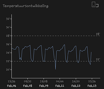 De 315 Watt CMH binnenzon staat nog op het groeischema 18/6 (18 uur aan en 6 uur uit). Dit heb ik vanmorgen aangepast naar het bloeischema 12/12 (12 uur aan en 12 uur uit). De lamp hangt op een hoogte van 28 centimeter boven de planten. De gemiddelde temperatuur was afgelopen week 23,63 graden Celsius, en de gemiddelde luchtvochtigheid was 47,83 procent. De luchtvochtigheid is wat gedaald doordat de kachel wat meer brandde dan normaal. Het was een frisse week!