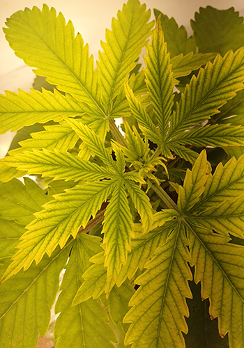 Laat ik deze week beginnen met te zeggen dat mijn planten weer mooi groen zijn, want de vergeling was vorige week toch wel het grote centrale thema van mijn kweekverslag. Met name één Mohammed had er veel last van maar ik zag het probleem ook al ontstaan bij de andere vier dames. Het was een vergeling aan de bovenste bladeren en ik had geen idee waar het aan lag. Of eigenlijk had ik ideeën genoeg, maar ik wist het niet zeker.