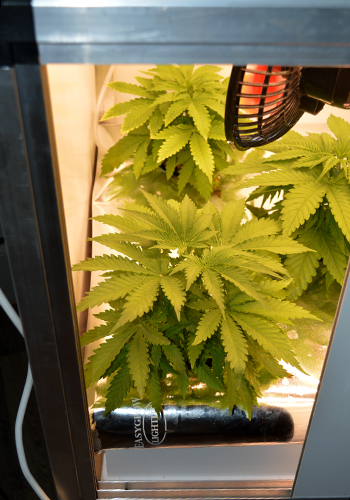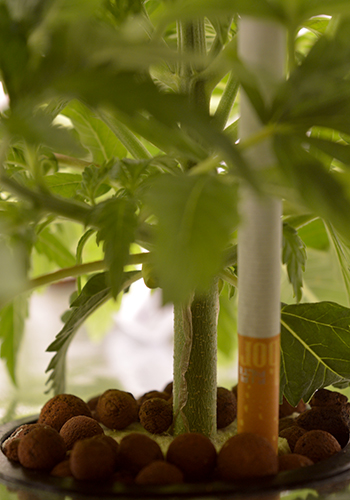 Op de foto’s hieronder zie je hoe kort en gedrongen de Mohammed wietplanten zijn. Om de dikte van de stammen aan te geven heb ik er even een sigaret naast gezet. Je ziet dat de stam al veel dikker is, ondanks dat de sigaret dichter bij de cameralens staat. Om te laten zien hoe je de ventilator aan de G-Bars kunt bevestigen, heb ik daar ook twee foto’s van gemaakt.