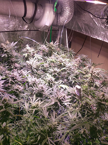 Wat ik nog vergeten ben, is dat ik de planten al in de groeifase, en later in het begin van de bloeifase nog heb gediefd. In de verdere bloei heb ik ook een deel van de grootste bladeren verwijderd om meer licht in de planten te krijgen, en de luchtcirculatie te verbeteren. Enkele van de onderste takken liet ik staan, om later wietolie van te maken.