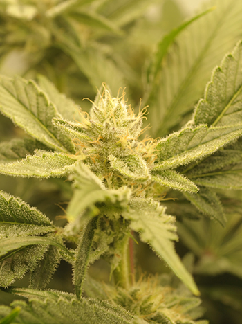 Nu deze dame door het verwijderde blad wat minder dicht begroeid is, kan ze mooie dikke toppen gaan produceren. De trichomen zijn nu ook volop in productie, en zitten zelfs op het blad. Ze ruikt al zo sterk dat ik voor de zekerheid het raam even dicht gedaan heb tijdens het snoeien.